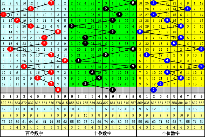 012路分析:最近10周星期三奖号012路总比例为13:7:10,012路号码轮空期数比为0:4:2,上周星期三奖号012路比为2:0:1,本周星期三注意1路号码走冷,看好2路号码热出,参考012路比1:0:2。