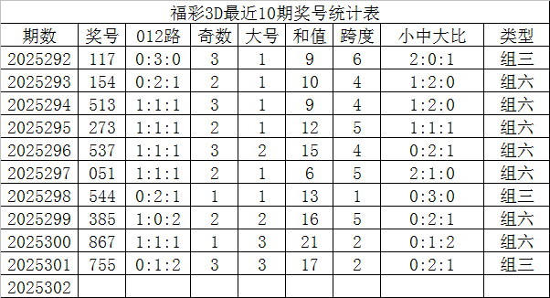 在以上号码中,号码7表现活跃,开出了6次;号码0、9表现较冷,开出了0次。号码奇偶比为17:13,奇数表现活跃,本期防奇数再出;号码大小比为15:15,基本持平,本期应注意小 号出现;本期排除号码:7,胆码关注:1。