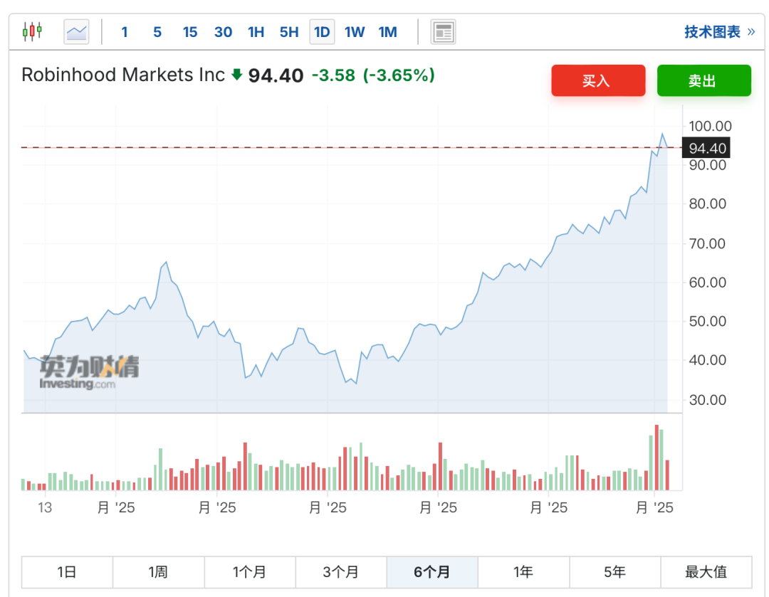 在欧洲开了发布会后,Robinhood股价大涨。
