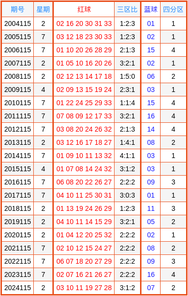 三区号码【23-33】:在历年双色球第115期同期奖号中,该区开出率为33.33%,表现一般,与理论概率相近。本期预计该区出号1枚,推荐出号关注:25。